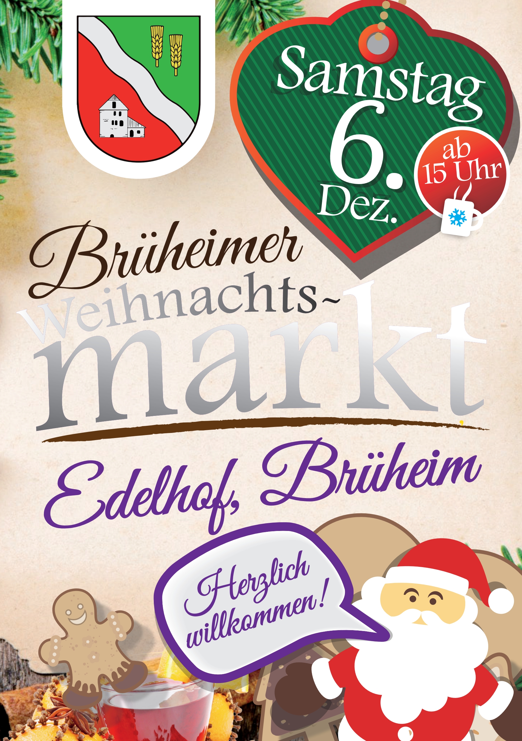 Auch 2025 klingt das Jahr mit dem traditionellen Brüheimer Weihnachtsmarkt auf dem Edelhof aus. Wir laden alle Brüheimer und Gäste aus nah und fern hierzu recht herzlich ein.